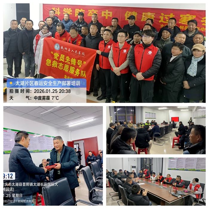 1月25日晚,太湖片區(qū)順利召開了2026年度安全生產(chǎn)暨春運(yùn)春節(jié)動(dòng)員部署工作會(huì)議。此次會(huì)議匯聚了太湖縣交管大隊(duì)、縣運(yùn)管中心、縣人民醫(yī)院急救中心領(lǐng)導(dǎo)和專家,太湖片區(qū)領(lǐng)導(dǎo)、管理人員及全體駕駛員,共同為即將到來的春運(yùn)工作做好充分準(zhǔn)備。
